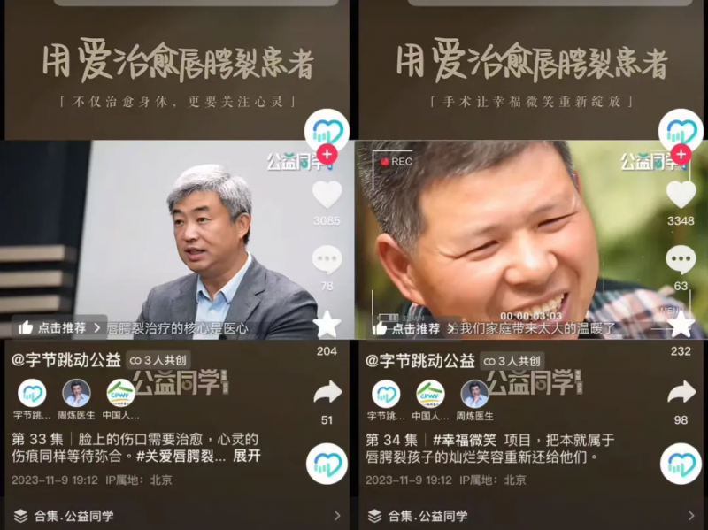 同时,还联动公益组织、医生、创作者,持续在抖音创作唇腭裂相关科普内容,帮助网友消除错误观念,提高社会对相关群体的包容和理解。