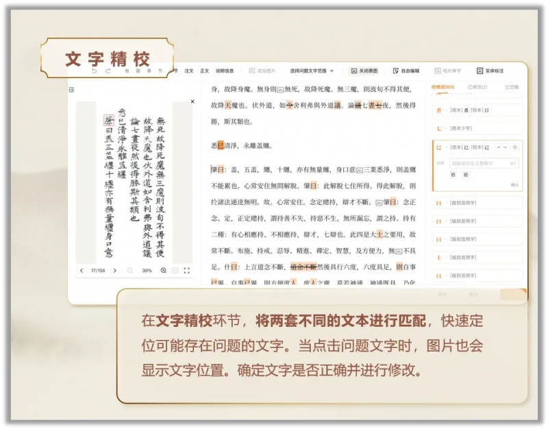 键盘不好打的字给你打好,标点给你加好,段落给你分好,在这样的基础上精校,简直是事半功倍。据专家测算,引入“识典古籍”平台后,古籍整理的效率至少可以提高五倍。